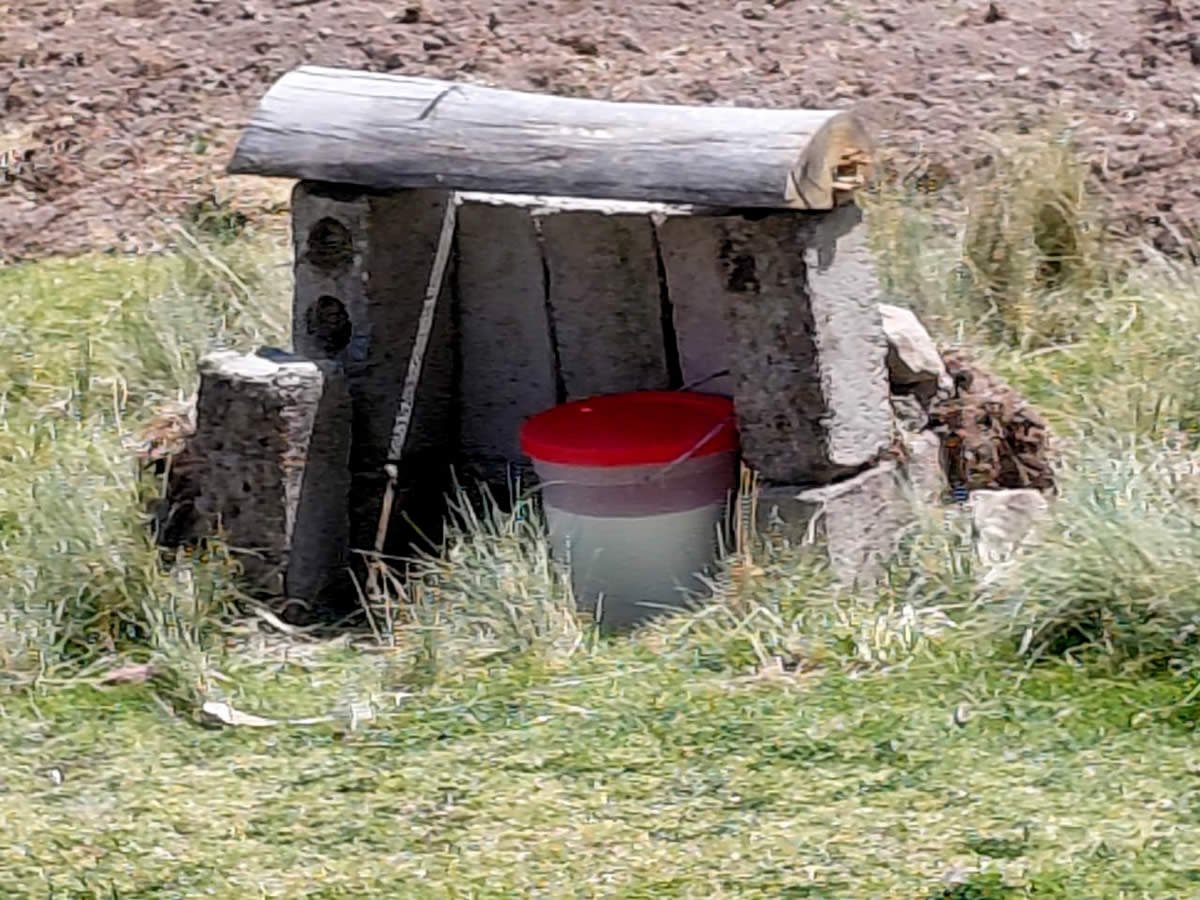 Hasta ahora. Los pobladores de esta zona indican acopiadores suspendieron la compra sin aviso previo, sin explicación, sin alternativas. Y ese balde de leche que encontré resguardado bajo tablones desgastados junto al camino, con su tapa roja como bandera de rendición, es la prueba irrefutable del abandono.