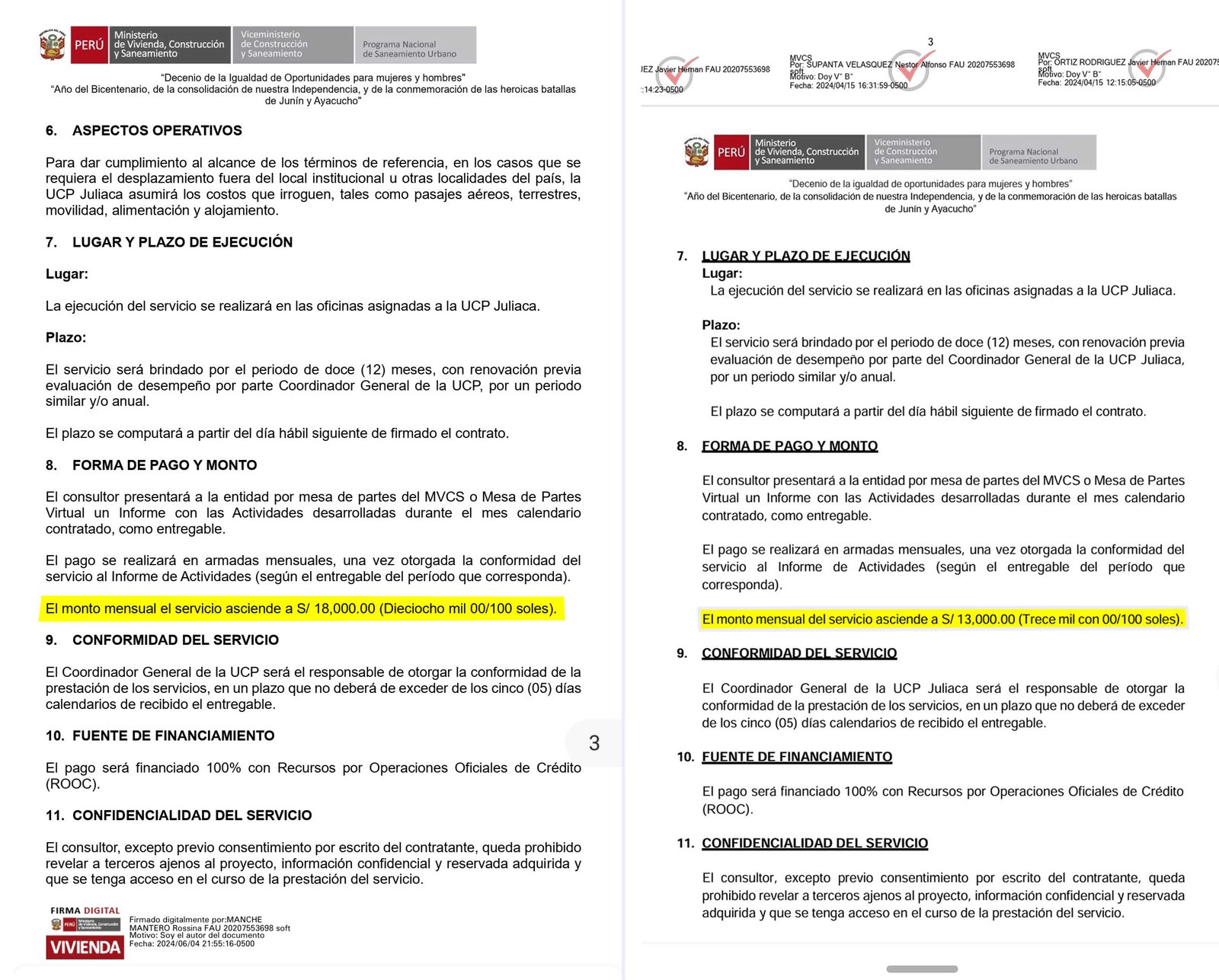 En el caso de Rocío Gómez, percibe (S/13,000) y Diego Montreuil (coordinador componente I, S/11,000), junto a otros 23 funcionarios las remuneraciones percibidas son de S/ 9,000 y S/ 10,000. Solo la secretaria del UCP, gana /3,500 (asistente administrativa).